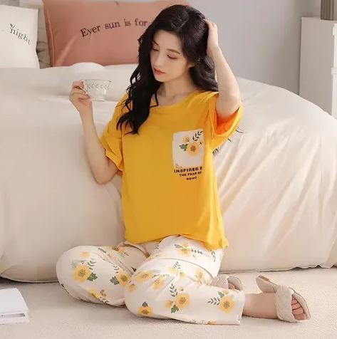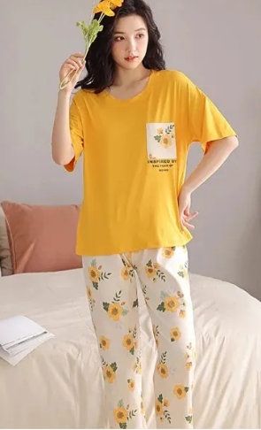 This night suit is perfect for girls and women who want to feel comfortable and stylish while they sleep. The Love print adds a playful touch to the pajama and half-sleeve jersey top. Made with jersey fabric, this nightdress is soft and cozy, ensuring a good night's sleep. The free size makes it easy to find the perfect fit. Whether you're lounging around the house or getting ready for bed, this night suit is a must-have. Plus, the added keyword "jersey fabric comfort" ensures that you'll be comfortable all night long.